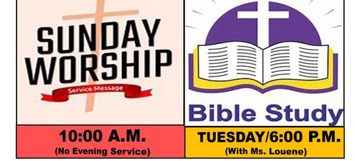 Join us for praise & worship at one of our church services. Pastor Walt Rattray and Ms. Louene Rattray [or friend of Church on the Street] preaches/teaches the Word of God.