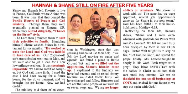 God is always working in Church on the Street; He never lets us get comfortable. Yet, we are assured of this one thing: “All things work together for good to those who love God, to those who are called according to His purpose.” (Romans 8:28) His will is for us to win and build people for His Kingdom. As this goes to press, we are in the process of moving our disciples out of our mission into the Phoenix Dream Center. This is temporary housing until we find another building for us.